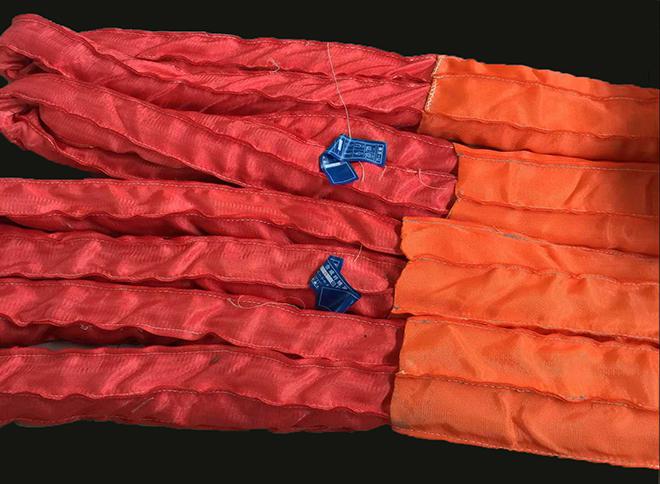 柔性吊裝帶保護套的設計一則是為了像扁平吊裝帶那樣增加大噸位合成纖維吊裝帶帶體與被吊物體的接觸面積,以此增高起重吊裝作業的平穩性;二則是為了發揮圓形吊裝帶護套材質聚酯纖維耐磨性好的作用,延長吊裝帶的使用周期。