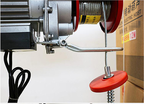 眾所周知,電動(dòng)葫蘆一旦超載,會(huì)很危險(xiǎn)。因此,作為微型電動(dòng)葫蘆廠家,河北東圣專門為電動(dòng)葫蘆研發(fā)了安全防護(hù)系統(tǒng),其核心部件為一種限位器裝置。 微型電動(dòng)葫蘆限位器具有一種從鋼絲繩卷筒主軸連接的聯(lián)軸器結(jié)構(gòu)。該聯(lián)軸器通過齒輪減速裝置從兩根從動(dòng)軸輸出速度較慢的不同轉(zhuǎn)速給固連在從動(dòng)軸上的寬、窄兩個(gè)凸輪組
